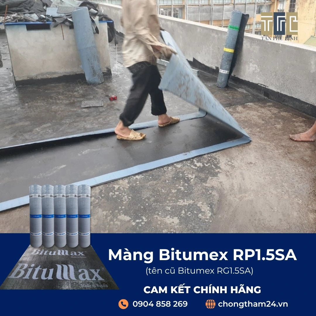 Bitumex RP1.5SA (tên cũ Bitumex RG1.5SA) là màng chống thấm tự dính dày 1,5mm, được chế tạo từ bitum chất lượng cao biến tính với polymer SBS (styrene-butadiene-styrene), mặt dưới của màng là một lớp keo dính được bảo vệ bởi một lớp màng silicon, mặt trên được phủ bởi lớp film PE.