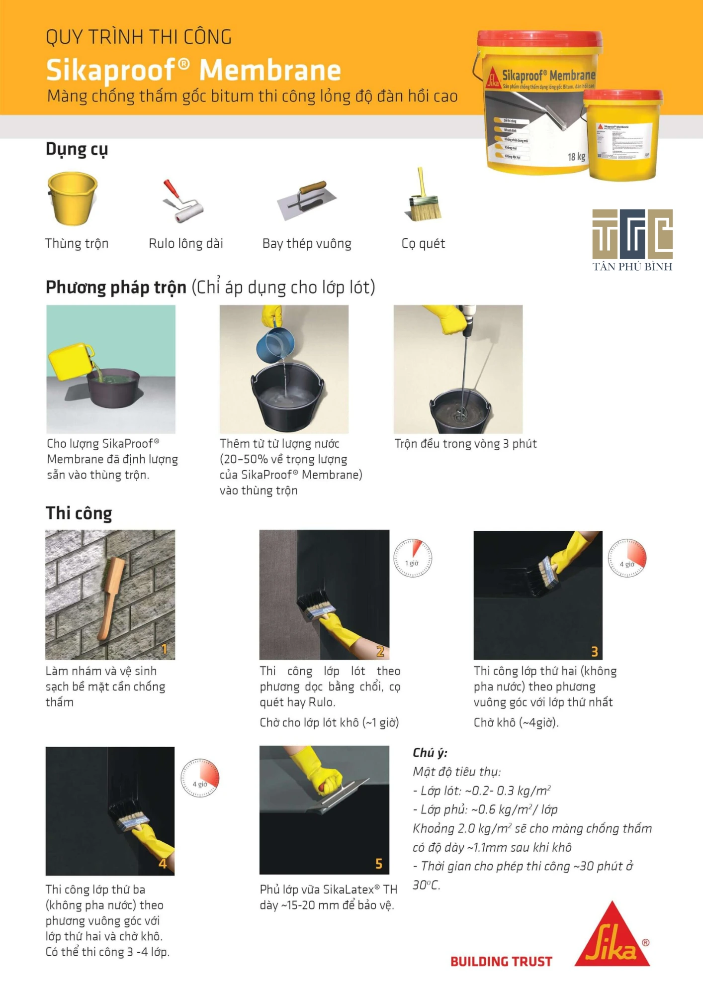 Tân Phú Bình là đơn vị chuyên phân phối vật liệu chống thấm chính hãng, trong đó có Sikaproof Membrane, phục vụ từ khách hàng mua lẻ đến nhà thầu và đại lý.