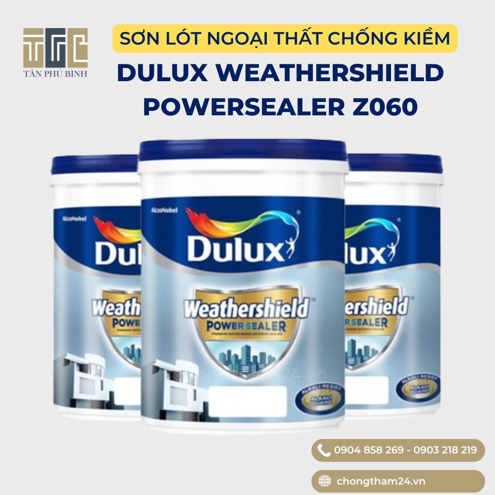 Dulux Weathershield Powersealer Z060 là sơn lót ngoại thất cao cấp, chuyên dùng cho tường ngoài trời. Sản phẩm có khả năng chống kiềm hóa, chống thấm ngược và chịu được điều kiện thời tiết khắc nghiệt, giúp bảo vệ lớp sơn phủ bền màu và lâu phai.