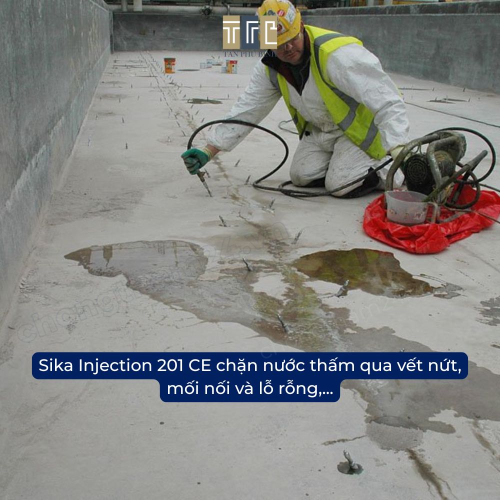 - Sika Injection 201 CE nên được thi công bởi những nhà thầu chuyên nghiệp. Có thể dùng máy bơm keo Pu 1 thành phần để bơm, trám, làm kín nước vĩnh viễn.
