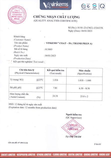 Chọn mua vữa chống thấm Vinkems Simon Coat 5S tại Tân Phú Bình bạn luôn được đảm bảo các tiêu chí sau: