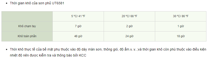 Thời gian lớp sơn kế tiếp: Tại 20ᴼC/68ᴼF